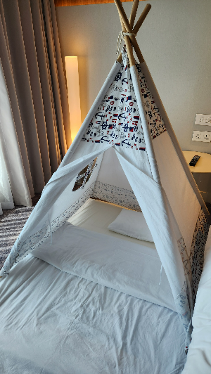 인천하얏트에서는 어린이 텐트를 33000원 ( 가격 : 30000 원. 세금 10% : 3000 원 ) 이라는 합리적인 가격에 이용할 수 있습니다. 호텔 예약 시, 요청사항에 기입하면 이용할 수 있으며 체크인 시에도 요청할 수 있습니다. 하지만 수량이 한정되어 있으므로 예약시 요청사항에 기입하는 것을 추천드립니다. 혹시 요청사항에 잊으셨다면 호텔에 전화를 걸어서 추가로 요청할 수도 있습니다. 아이들에게 특별한 잠자리를 선물해보시죠~